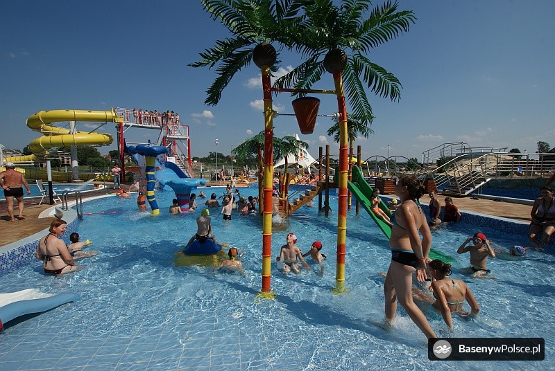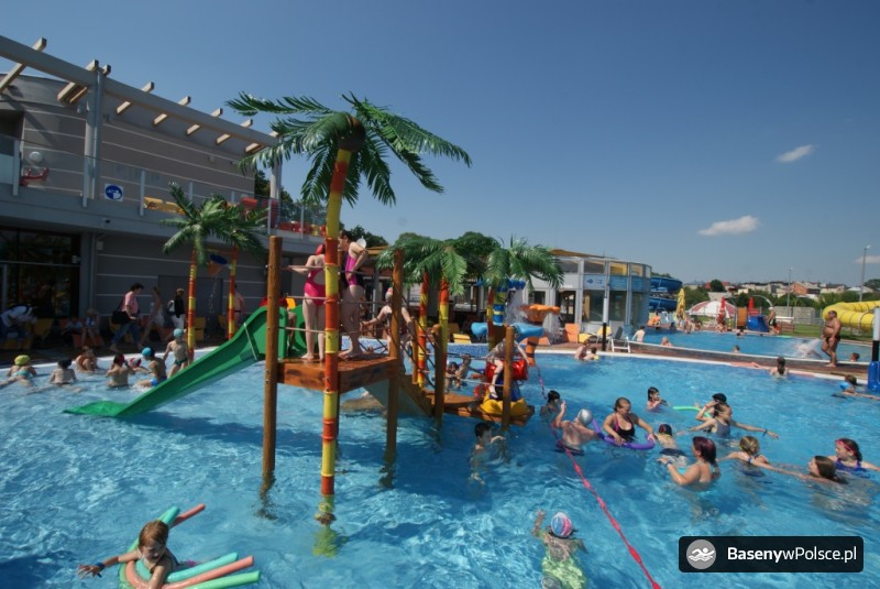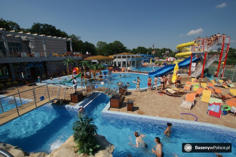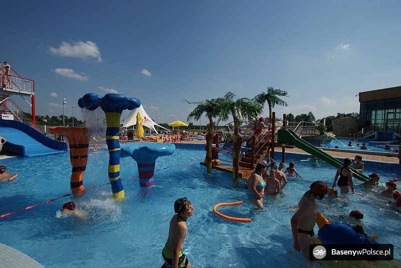 W kompleksie znajdują się nowe baseny kryte, baseny otwarte oraz zespół odnowy biologicznej. Baseny otwarte zostały połączone z budynkiem basenów krytych i zasilane są leczniczą solanką termalną. Takie rozwiązanie umożliwi funkcjonowanie basenów przez cały rok niezależnie od pogody . W kompleksie mieści się również basen solankowo uzdrowiskowy z ciepłą wodą oraz niezależny basen wewnętrzny z częścią ogólną i dziecięcą. Powierzchnia łączna lustra wody we wszystkich strefach to około 1500 m2