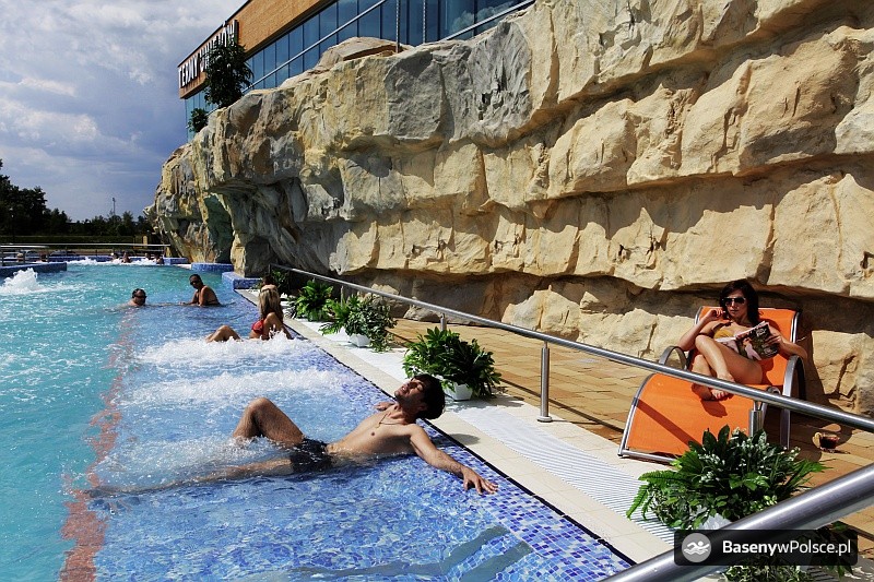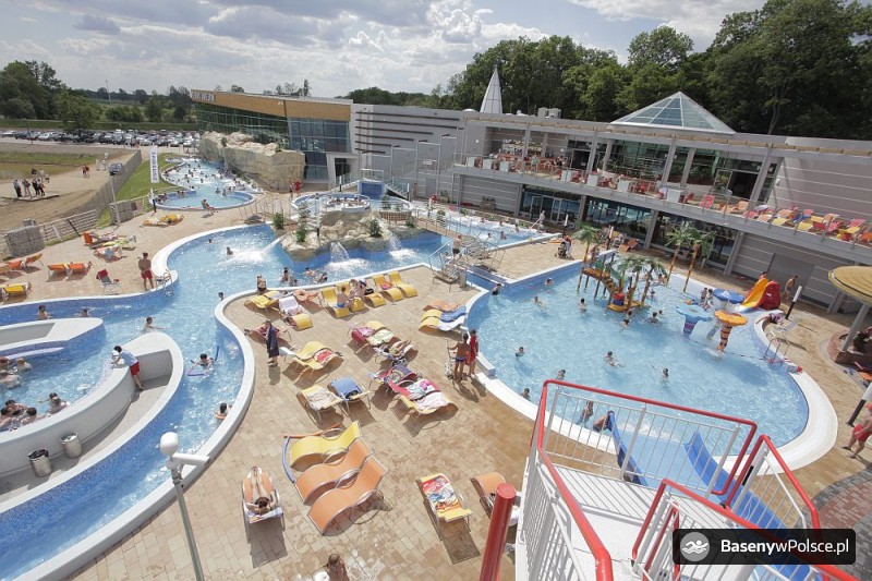 Kompleks Termalno-Basenowy, który jest położony jest u podnóża XIV- wiecznego Zamku otoczonego XIX – wiecznym parkiem oferuje gorące kąpiele w leczniczych solankach termalnych.